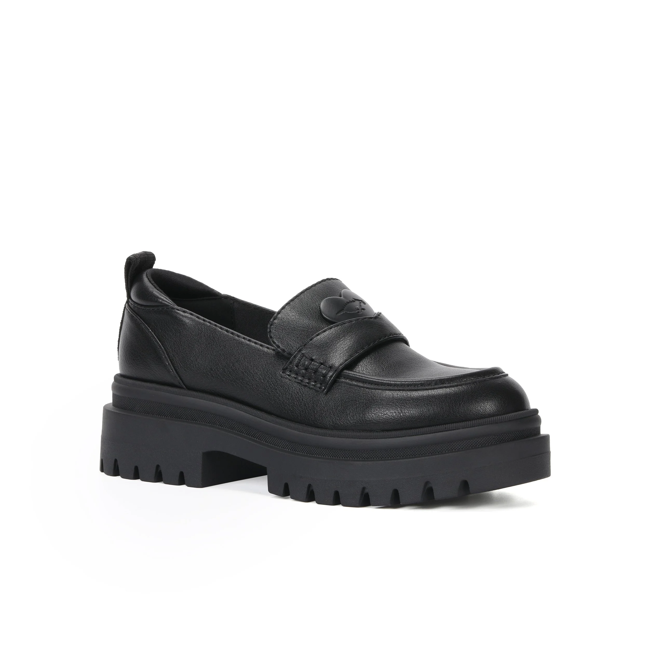 DANDYCrafted with a black faux leather upper, this slip-on loafer features a platform sole for added height and a comfortable 5cm heel. GRINNEL PUBLACK