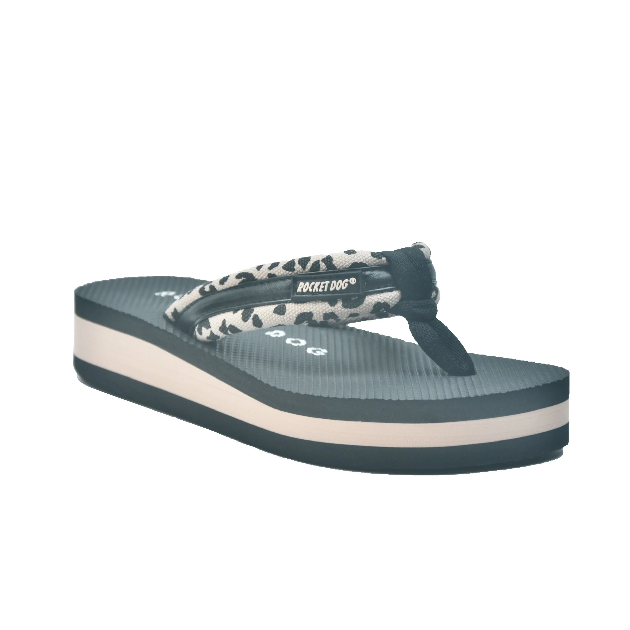 PADDED STRAP THONG STYLE WITH CONTRAST STRIPE TRIM ON TEXTURED CUSHIONED INSOLE AND FEATHERWEIGHT EVA MINI WEDGE WITH MATCHING CONTRAST STRIPING