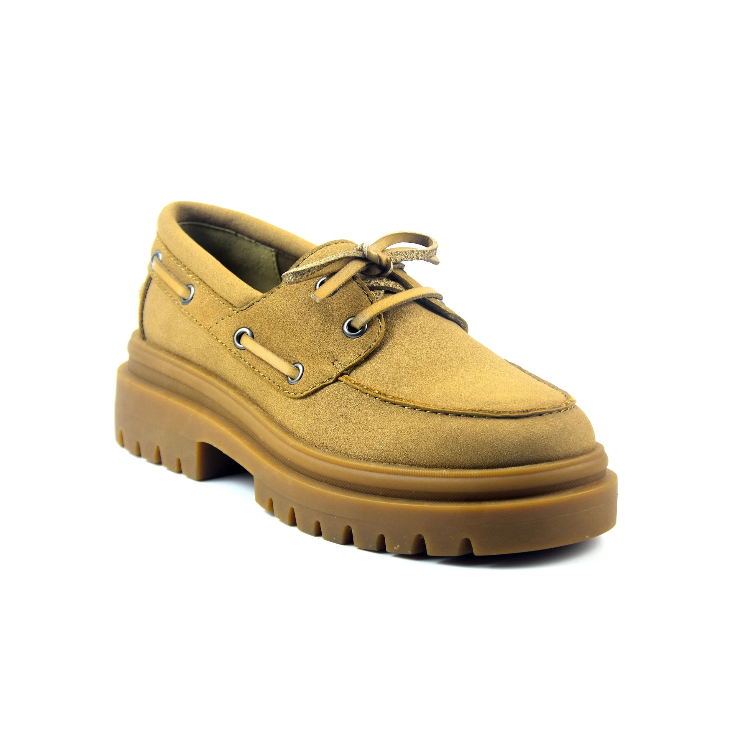 BOAT SHOE STYLE WITH SELF LACING DETAIL AND COMFORT FOAM INSOLE ON A LIGHTWEIGHT, CHUNKY LUG OUTSOLE